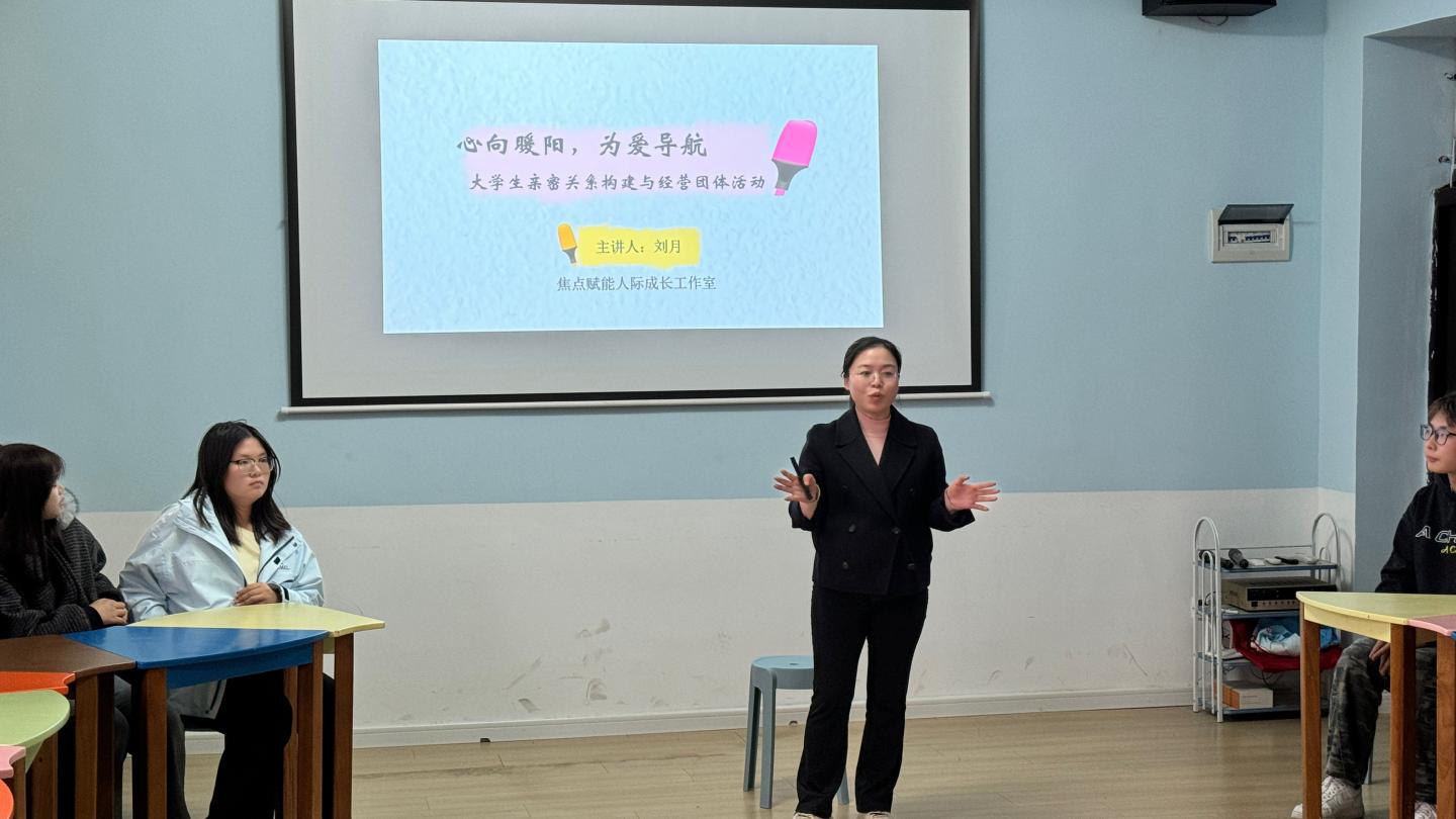 11月5日,我院焦点赋能人际成长工作室举办亲密关系主题团体心理辅导活动,由学院副书记刘月带领,组织30余名学生参与。