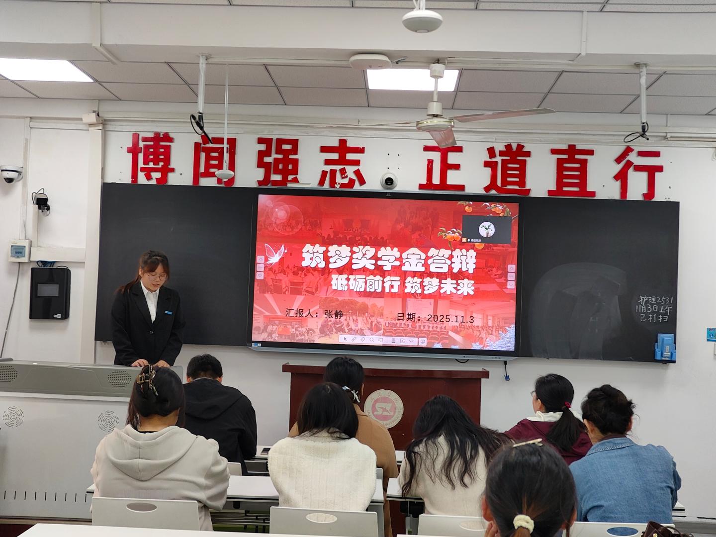 11月3日,学院组织召开了2024-2025学年“正德笃行”奖学金、2025年度筑梦奖学金评审工作答辩会。学院党政领导、辅导员、班主任及学生代表担任评委,“正德笃行”奖学金、筑梦奖学金申请者(经个人申报、学院审核)参与答辩,部分学生代表到场观摩。